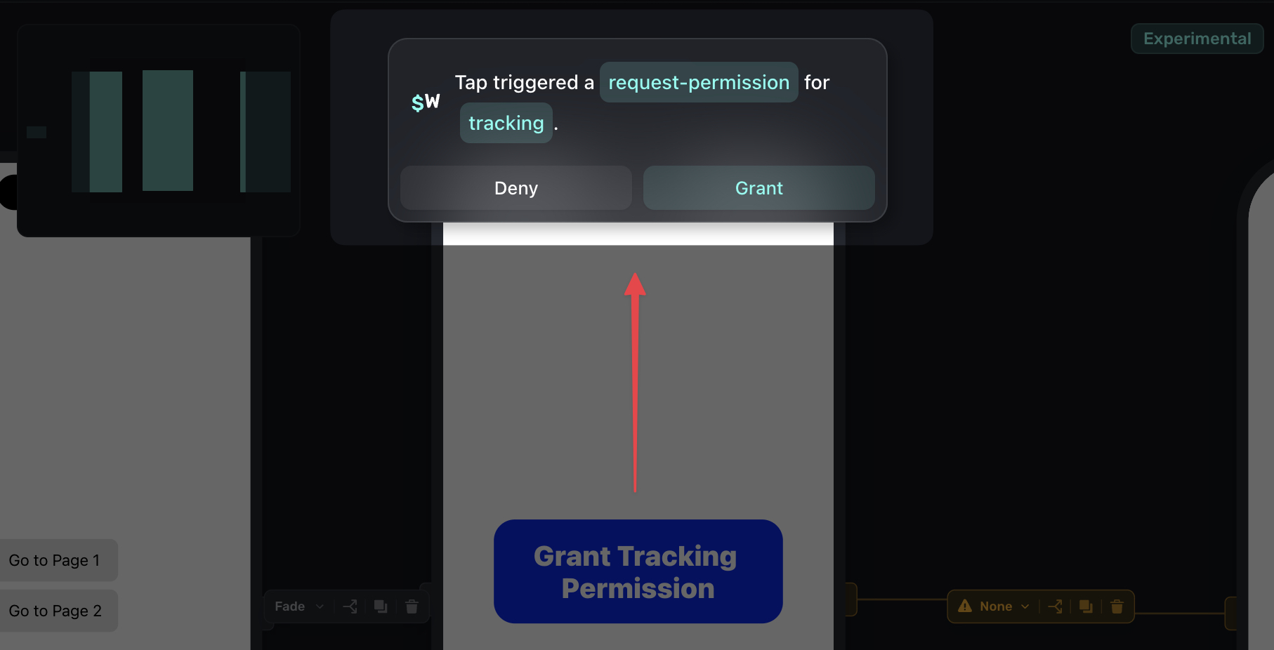 Using the permissions tap behavior, you can test Flows without having to run it on device. The canvas view will allow you to mock either response when you interact with a component with the permission behavior: