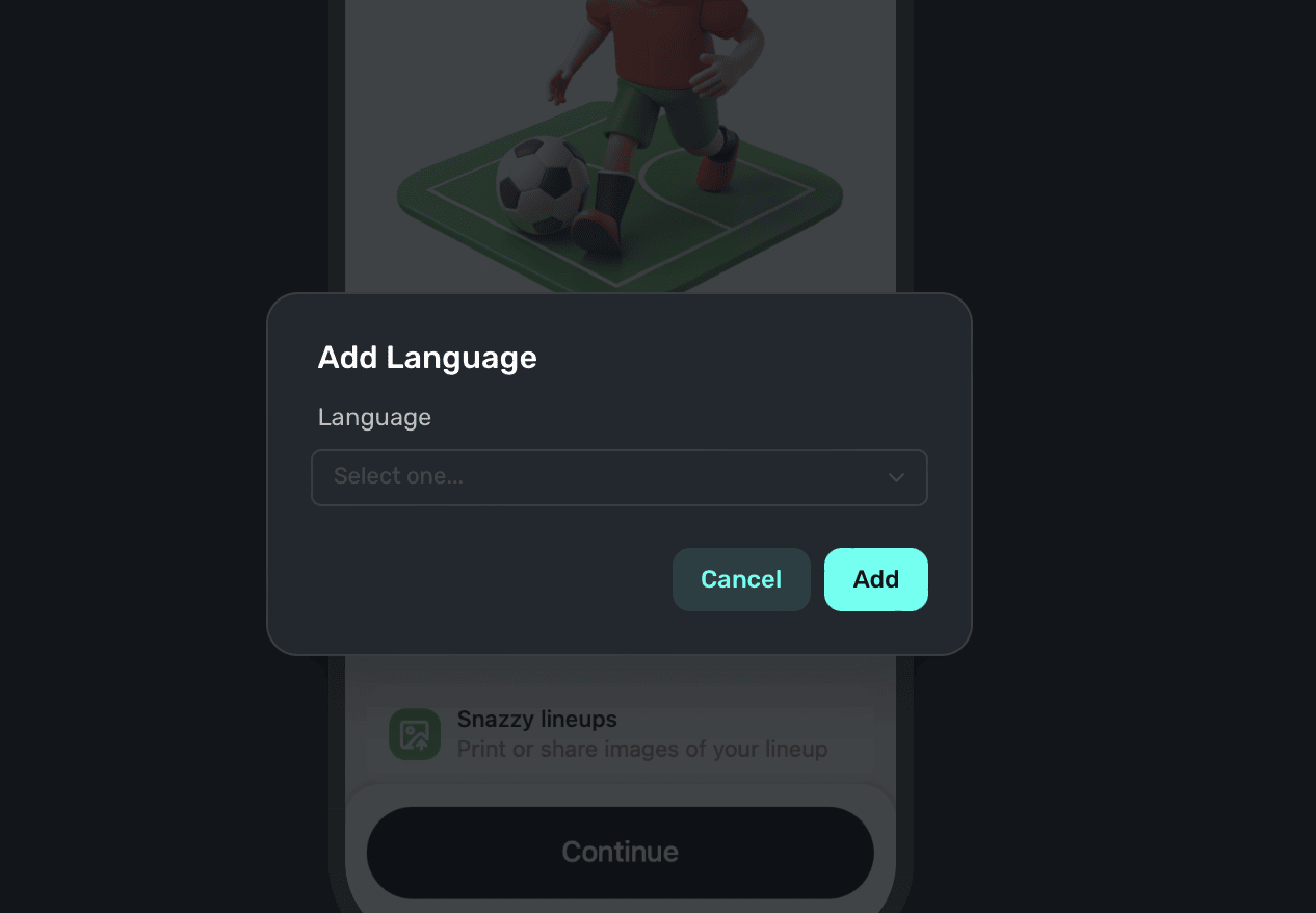 To start the AI localization process, click on the Add Language button. Then, choose AI Localize. Superwall will being to localize each value, while respecting the AI Localize settings in place: