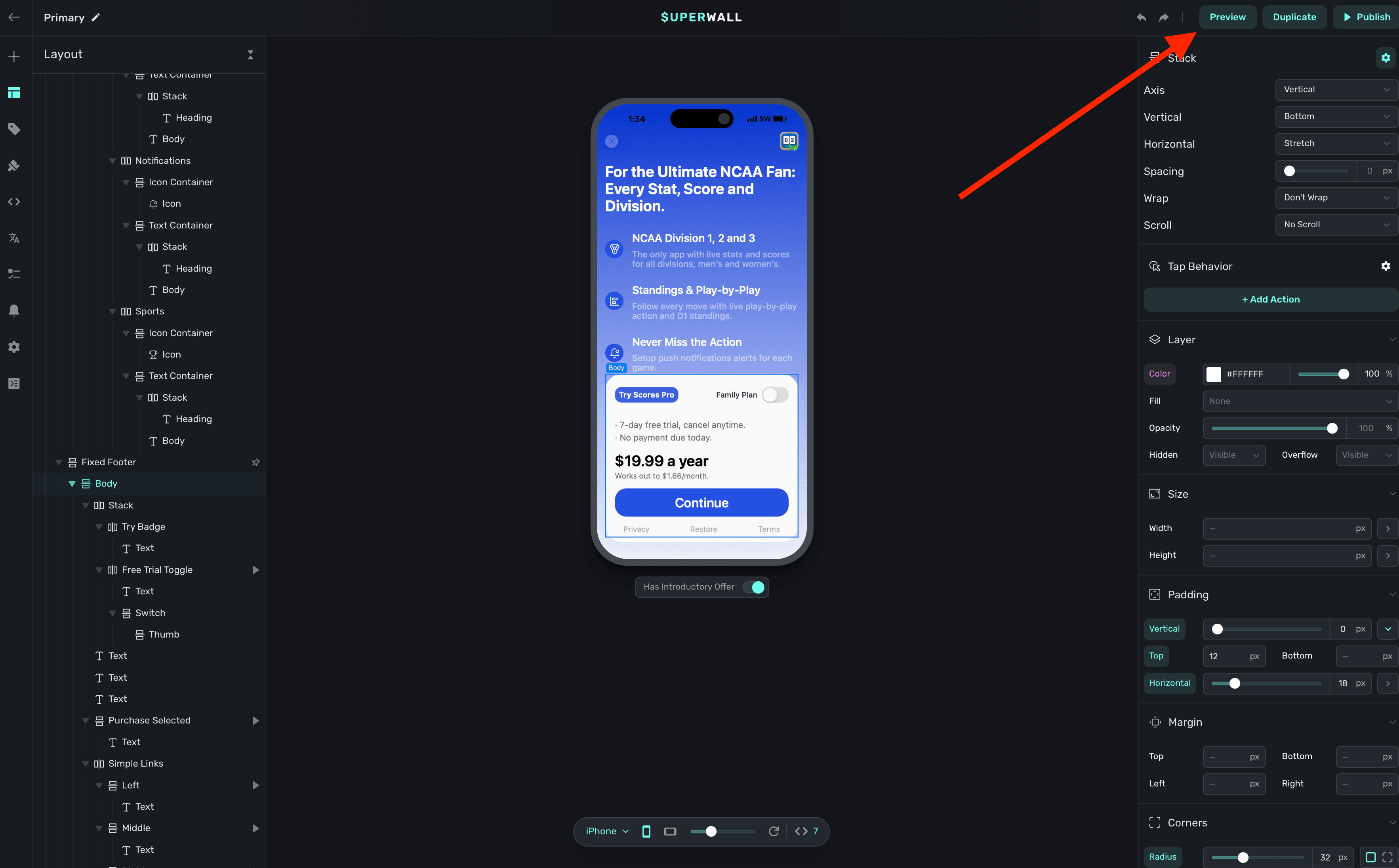 Next, open your paywall from the dashboard and click Preview. You'll see a QR code appear in a pop-up: