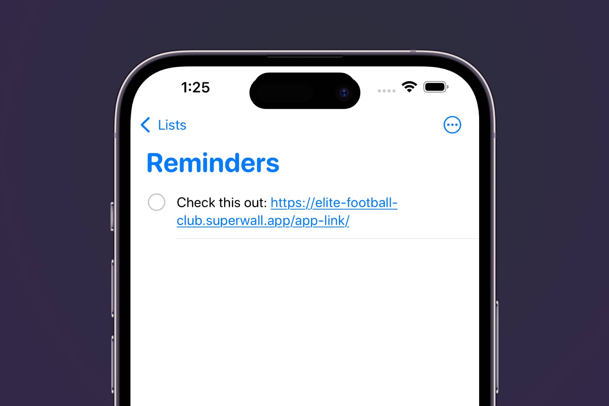 https://[your web checkout link]/app-link/— which is simply your web checkout link with/app-link/at the end. This is easiest to test on device, since you have to tap an actual link instead of visiting one directly in Safari or another browser. In the iOS simulator, adding the link in the Reminders app works too: